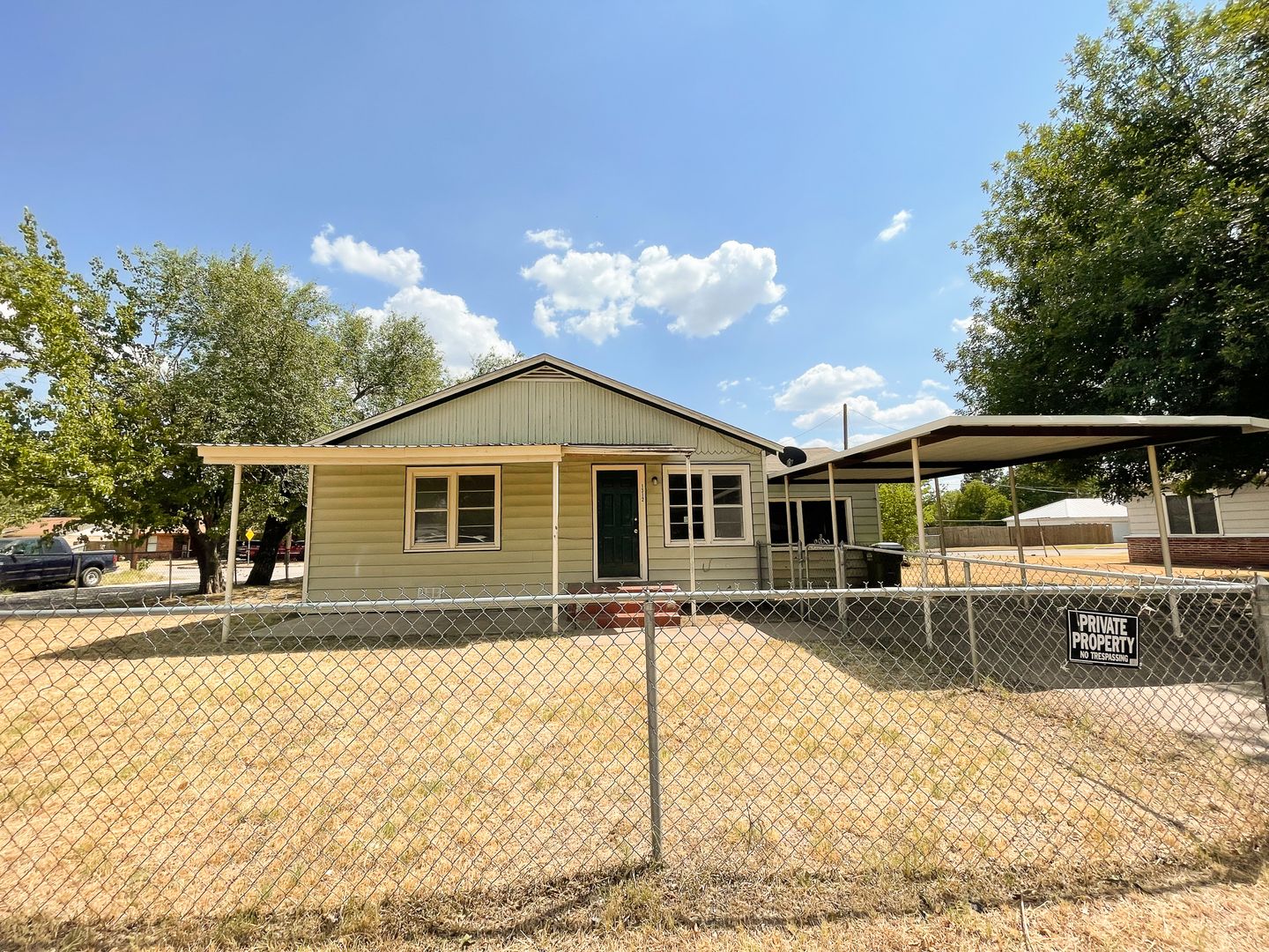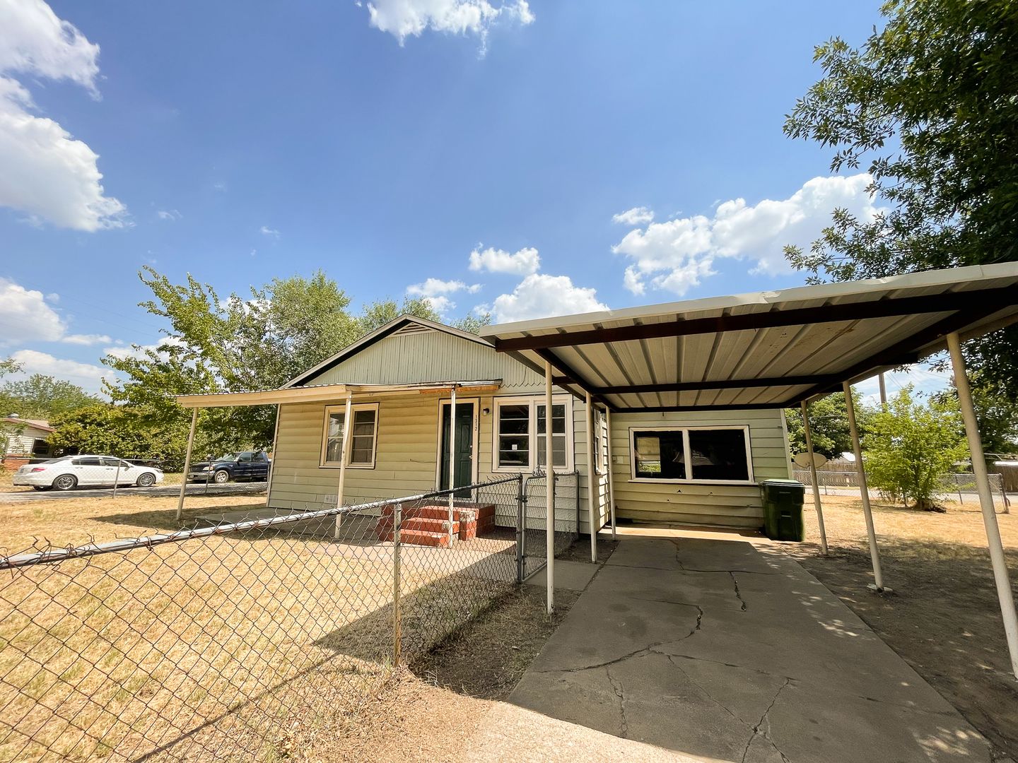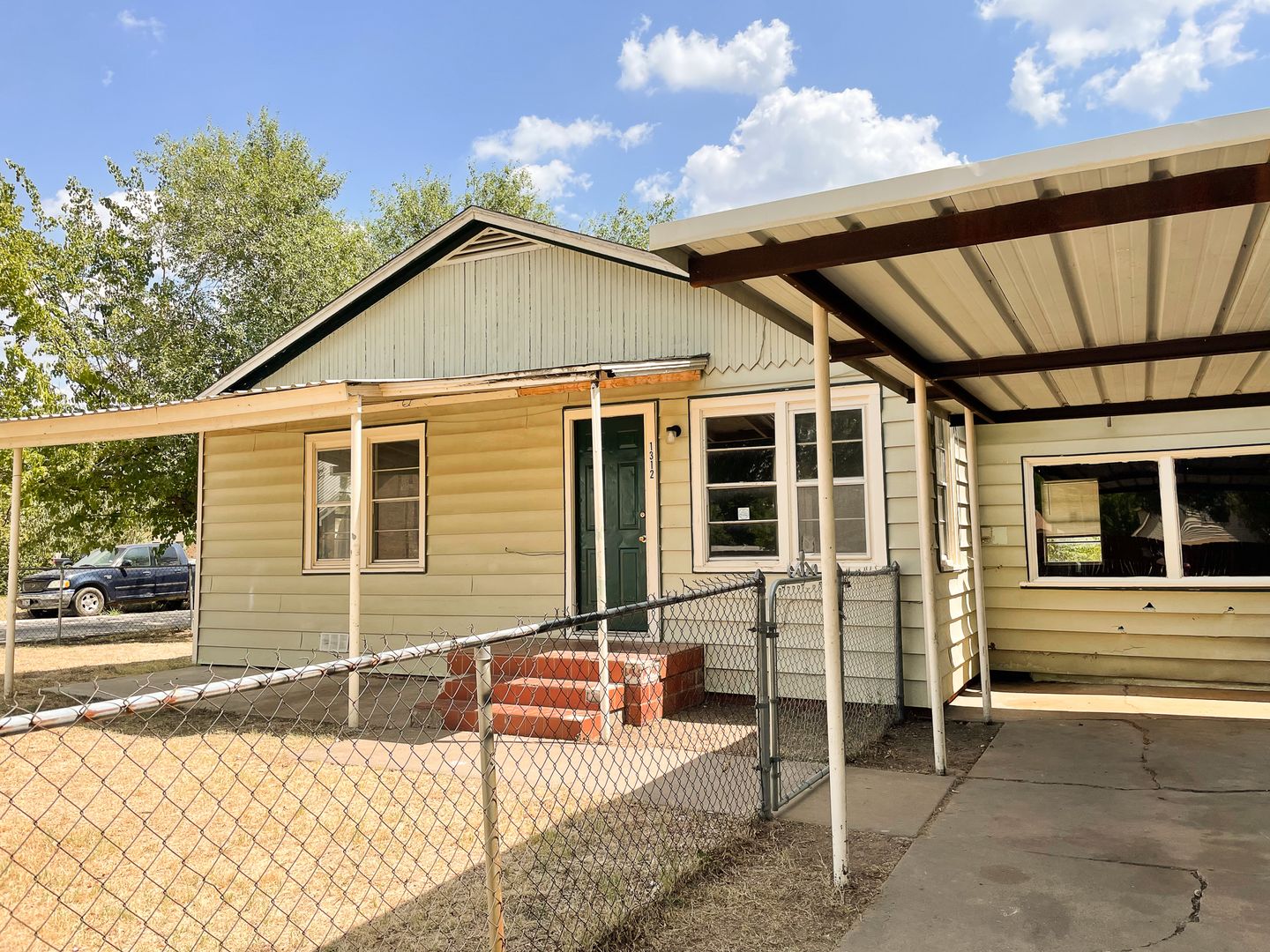 2 Bedroom, 1 Bath House, with carport, central heat & air, washer and dryer connections, fenced yard, and BONUS ROOM (getting 3 bedroom for price of 2!).
