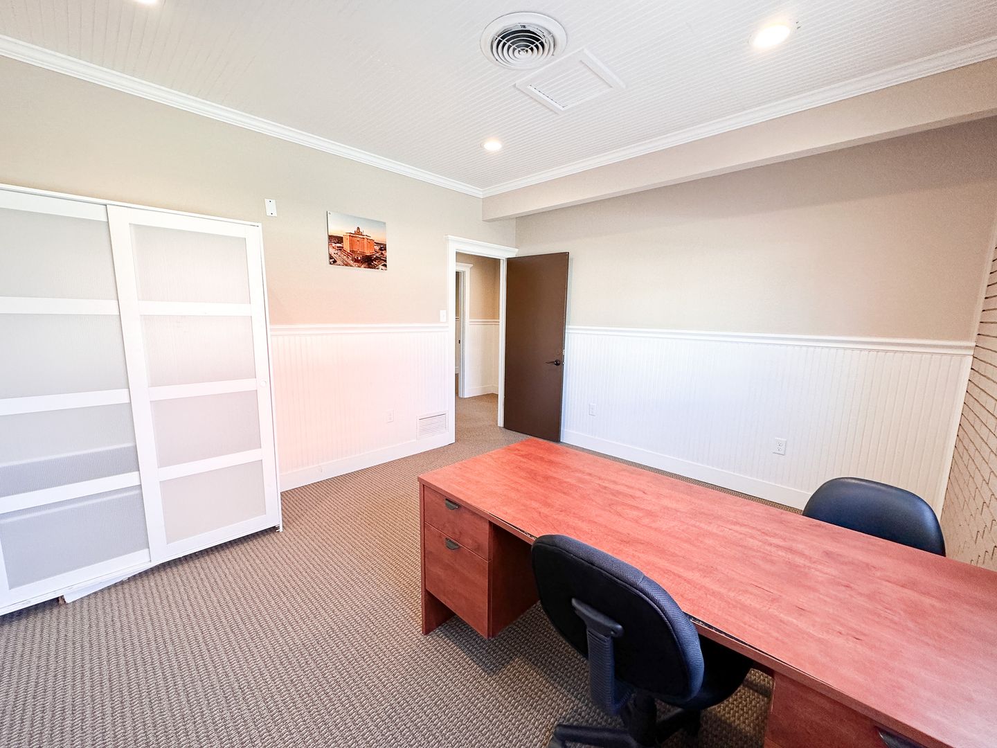 This private office is located right in the heart of downtown. Along with ALL utilities (including WiFi). The common waiting room has a printer & seating. In this building you will have access to the 4 restrooms & elevator.